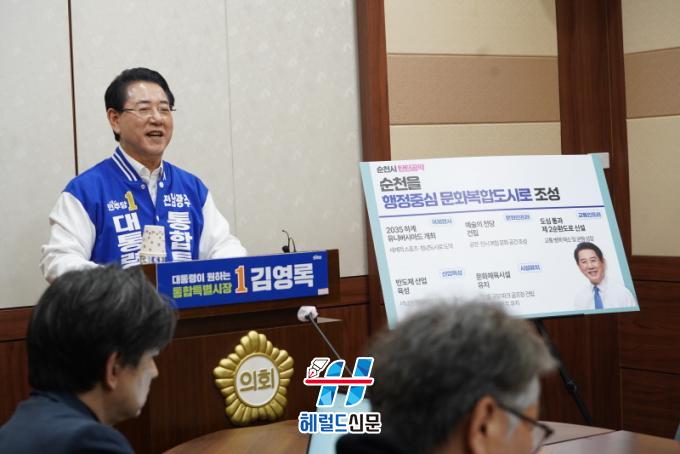 [Çì·²µå½Å¹® = ³ë½Â¾ð ±âÀÚ] ±è¿µ·Ï Àü³²±¤ÁÖÆ¯º°½ÃÀå ¿¹ºñÈ帴 3ÀÏ ¿ÀÈÄ ¼øÃµ½ÃÀÇȸ ¼ÒȸÀǽǿ¡¼ ±âÀÚȸ°ßÀ» °®°í ¡°¼øÃµÀ» Á¤¿ø¿¡¼ ½ÃÀÛÇØ ¼¼°è·Î »¸´Â ÇàÁ¤Á᫐ ¹®Èº¹ÇÕµµ½Ã·Î À°¼ºÇϰڴ١±°í ¹àÇû´Ù.
