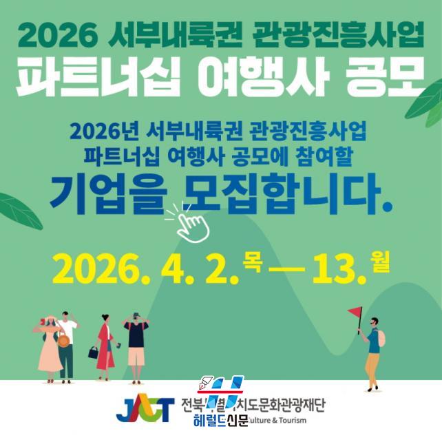 [Çì·²µå½Å¹® = ³ë½Â¾ð ±âÀÚ] ÀüºÏ¹®È°ü±¤Àç´Ü(ÀÌÇÏ Àç´Ü, ´ëÇ¥ÀÌ»ç À̰æÀ±)ÀÌ ¡®2026 ¼ºÎ³»·ú±Ç °ü±¤ÁøÈï»ç¾÷¡¯ÀÇ ÀÏȯÀ¸·Î ¼ºÎ³»·ú±Ç ¿¬°è¡¤Ã¼·ùÇü °ü±¤»óǰÀ» ¿î¿µÇÒ ÆÄÆ®³Ê½Ê ¿©Çà»ç¸¦ ¸ðÁýÇÑ´Ù°í ¹àÇû´Ù.