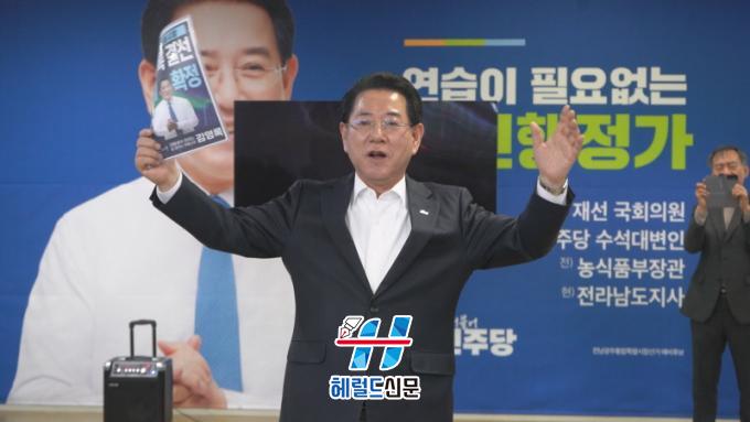 [Çì·²µå½Å¹® = ³ë½Â¾ð ±âÀÚ] ±è¿µ·Ï Àü³²±¤ÁÖÆ¯º°½ÃÀå ¿¹ºñÈ帴 5ÀÏ ¹ÎÁÖ´ç ÅëÇÕ½ÃÀå Èĺ¸ ¼±ÃâÀ» À§ÇÑ º»°æ¼±¿¡¼ °á¼± Èĺ¸·Î È®Á¤µÊ¿¡ µû¶ó ¡°¹«°Å¿î Ã¥ÀÓ°¨À¸·Î °á¼±¿¡¼µµ ½Â¸®Çϰڴ١±°í ¹àÇû´Ù.