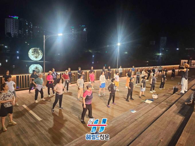 ÁÖ¿ùµ¿°ú ¹é¿îµ¿ µîÁö¿¡ °ÅÁÖÇÏ´Â ÁֹεéÀº Ǫ¸¥±æ °ø¿ø¿¡¼ ½Å¸í³ª´Â À²µ¿¿¡ ¸ÂÃç ½ÅüȰµ¿¿¡ ³ª¼°í ÀÖÀ¸¸ç, ȿõÁö±¸ ÁֹεéÀº ¹°ºû ±Ù¸°°ø¿ø È£¼ö¿¡ ¼¼¿öÁø ´Þºû Á¶Çü¹°ÀÇ °í¿î ÀÚÅÂ¿Í ºü¸¥ ¹ÚÀÚÀÇ À½¾ÇÀ» ¹þ »ï¾Æ ¿Á¤ÀûÀÎ ¿îµ¿À» Áñ±â°í ÀÖ´Ù.