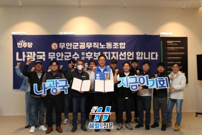 [Çì·²µå½Å¹® = ³ë½Â¾ð ±âÀÚ] ¹«¾È±º °ø¹«Á÷ ³ëµ¿Á¶ÇÕÀÌ ³ª±¤±¹ ´õºÒ¾î¹ÎÁÖ´ç ¹«¾È±º¼ö ¿¹ºñÈĺ¸¿¡ ´ëÇÑ ÁöÁö¸¦ °ø½Ä ¼±¾ðÇß´Ù.