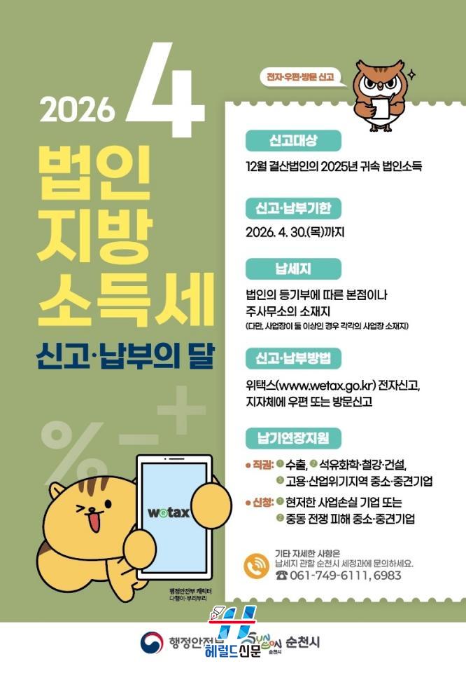 [Çì·²µå½Å¹® = ³ë½Â¾ð ±âÀÚ] ¼øÃµ½Ã´Â 4¿ù ÇÑ ´ÞÀ» ¹ýÀÎÁö¹æ¼Òµæ¼¼ ÁýÁß ½Å°í¡¤³³ºÎ ±â°£À¸·Î ¿î¿µÇϸç, °ü³» ¹ýÀεéÀº 4¿ù 30ÀϱîÁö ½Å°í¡¤³³ºÎ¸¦ ¿Ï·áÇØ ÁÙ °ÍÀ» ´çºÎÇß´Ù.
