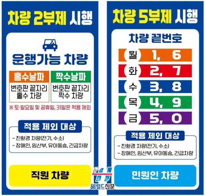 ½Â¿ëÂ÷ 5ºÎÁ¦´Â µµÃ»À» ¹æ¹®ÇÏ´Â ¹Î¿øÀÎ Â÷·®°ú °ø¿µÁÖÂ÷Àå¿¡ Àû¿ëµÈ´Ù. Â÷·®¹øÈ£ ³¡ÀÚ¸®¿¡ µû¶ó ÇØ´ç ¿äÀÏ¿¡´Â ÃâÀÔ ÀÌ Á¦ÇѵǸç, ¿äÀϺ° Àû¿ë ±âÁØÀº ¡ã¿ù¿äÀÏ 1¡¤6 ¡ãÈ¿äÀÏ 2¡¤7 ¡ã¼ö¿äÀÏ 3¡¤8 ¡ã¸ñ¿äÀÏ 4¡¤9 ¡ã±Ý¿äÀÏ 5¡¤0ÀÌ´Ù.