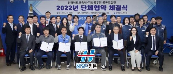 [Çì·²µå½Å¹® = ³ë½Â¾ð ±âÀÚ] Àü¶ó³²µµ±³À°Ã»°ú Áö¹æ°ø¹«¿ø °øµ¿±³¼·´ÜÀº 4¿ù 8ÀÏ(¼ö) Àü³²±³À°Ã»¿¡¼ ÀϹÝÁ÷°ø¹«¿øÀÇ À뱂 º¸È£¿Í ±Ù¹«È¯°æ °³¼±, °Ç°ÇÑ Á¶Á÷¹®È Á¶¼º, Çб³ ÇöÀå ¾÷¹«°æ°¨¿¡ ÃÊÁ¡À» µÐ ¸ÂÃãÇü Áö¿øÀ» À§ÇÑ ´ÜüÇù¾àÀ» ü°áÇß´Ù.