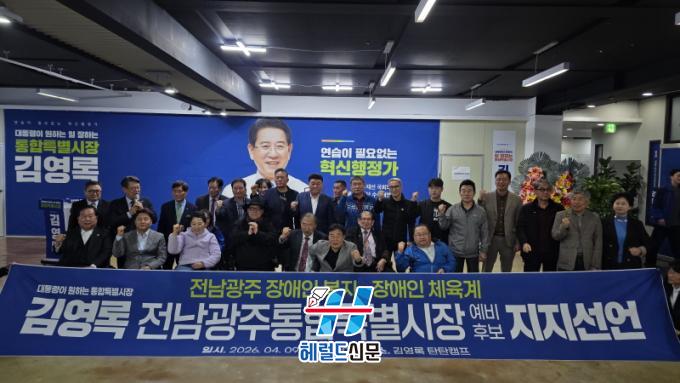 [Çì·²µå½Å¹® = ³ë½Â¾ð ±âÀÚ] Àü³²¡¤±¤ÁÖ Àå¾ÖÀÎ º¹Áö ¹× üÀ°°è ´ëÇ¥ ¹× °ü°èÀÚµéÀº 9ÀÏ ¿ÀÈÄ ±è¿µ·Ï Àü³²±¤ÁÖÅëÇÕÆ¯º°½ÃÀå ¿¹ºñÈ常¦ °·ÂÇÏ°Ô ÁöÁöÇÑ´Ù¸ç ½Â¸®¸¦ À§ÇØ ÇÔ²² ÇÏ°Ú´Ù°í ¼±¾ðÇß´Ù.