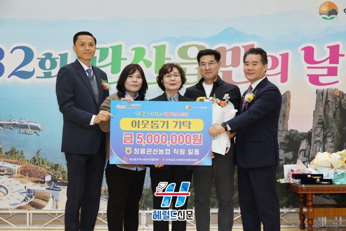 ¾Æ¿ì¸§ ¿µ³óÁ¶ÇÕ¹ýÀÎÀÇ ±èÇö¹Î ´ëÇ¥ 500¸¸¿ø, ÀåÈï°ü»ê³óÇù(Á¶ÇÕÀå ¿ÀÇüÁÖ) ÀÓÁ÷¿ø 500¸¸¿ø, ÀåÈﱺÁ¶»ç·áÇùÀÇȸ °ü»êÀ¾¿¬°áü ȸ¿ø Àϵ¿ 300¸¸ ¿øÀ» ±âŹÇϸç Áö¿ª »ó»ýÀÇ °¡Ä¡¸¦ ½ÇÇöÇß´Ù.