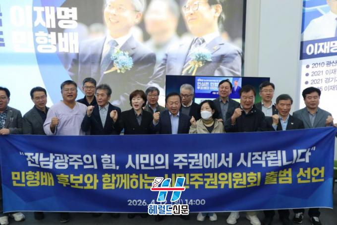[Çì·²µå½Å¹® = ³ë½Â¾ð ±âÀÚ] ´õºÒ¾î¹ÎÁÖ´ç Àü³²±¤ÁÖÅëÇÕÆ¯º°½ÃÀå °æ¼± Èĺ¸ÀÎ ¹ÎÇü¹è ±¹È¸ÀÇ¿ø(±¤ÁÖ ±¤»ê±¸À»)ÀÌ Áö³ 12ÀÏ °æ¼±»ç¹«¼Ò¿¡¼ ¡®½Ã¹ÎÁÖ±ÇÀ§¿øÈ¸¡¯¸¦ °ø½Ä Ãâ¹ü½Ã۰í, Àü³²‧±¤ÁÖ ÅëÇÕÀ» ½Ã¹ÎÀÌ ÁÖµµÇÏ´Â ¡®Á÷Á¢¹ÎÁÖÁÖÀÇ¡¯ ¹æ½ÄÀ¸·Î ÃßÁøÇÏ°Ú´Ù°í ¼±¾ðÇß´Ù.