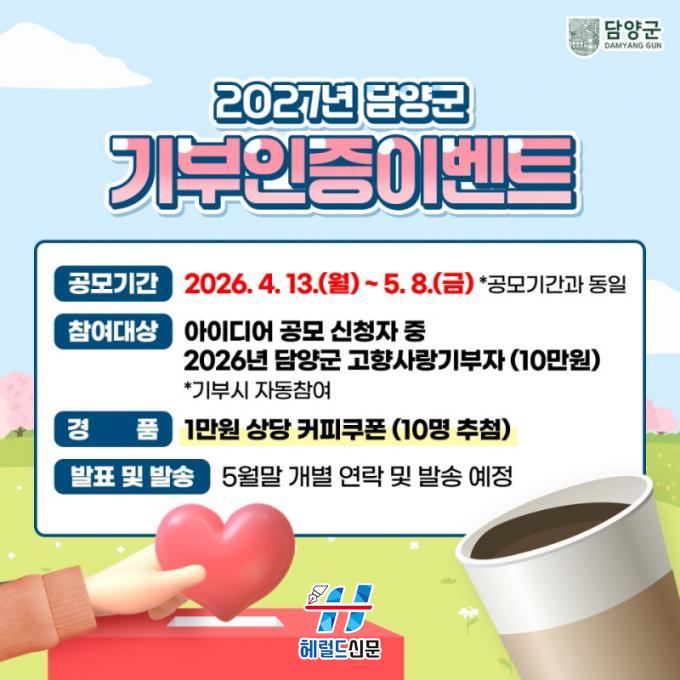 ¿ì¼ö Á¦¾ÈÀÚ¿¡°Ô´Â ÃÑ 100¸¸ ¿øÀÇ ´ã¾ç»ç¶û»óǰ±ÇÀÌ Áö±ÞµÇ¸ç, ÃÖ¿ì¼ö»ó 1¸í(30¸¸ ¿ø), ¿ì¼ö»ó 2¸í(°¢ 20¸¸ ¿ø), Àå·Á»ó 3¸í(°¢ 10¸¸ ¿ø)À» ¼±Á¤ÇÑ´Ù. ¼±Á¤µÈ ¾ÆÀ̵ð¾î´Â ÇâÈÄ ´ã¾ç±º °íÇâ»ç¶û±âºÎÁ¦ Á¤Ã¥ ¹× ±â±Ý¿î¿ë°èȹ ¼ö¸³¿¡ Àû±Ø ¹Ý¿µµÉ ¿¹Á¤ÀÌ´Ù.
