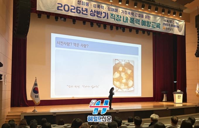 [Çì·²µå½Å¹® = ³ë½Â¾ð ±âÀÚ] Àü¶ó³²µµ´Â 13ÀÏ µµÃ» ±è´ëÁß°´ç¿¡¼ Àü Á÷¿øÀ» ´ë»óÀ¸·Î Á÷Àå ³» Æø·Â ¿¹¹æ±³À°À» ÇØ µðÁöÅмº¹üÁË¿Í ½ºÅäÅ· µî ´ëÀÀ ¿ª·®À» ³ô¿´´Ù.