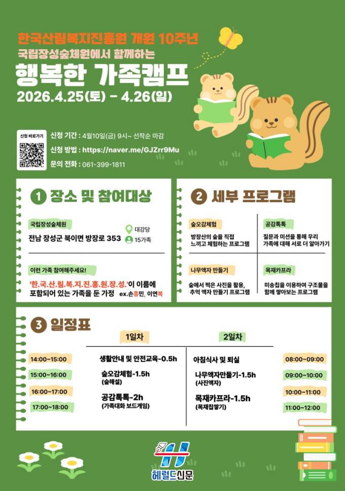 [Çì·²µå½Å¹® = Àü¿µ±Ô ±âÀÚ] »ê¸²Ã» Çѱ¹»ê¸²º¹ÁöÁøÈï¿ø(¿øÀå Á÷¹«´ëÇà Ȳ¼ºÅÂ) ±¹¸³À强½£Ã¼¿øÀº ¿ÃÇØ °³¿ø 10ÁÖ³âÀ» ¸Â¾Æ ¿À´Â 4¿ù 25ÀϺÎÅÍ 26ÀϱîÁö 1¹Ú 2Àϰ£ ¡®Æ¯º°ÇÑ °¡Á·Ä·ÇÁ¡¯¸¦ ¿î¿µÇÑ´Ù°í ¹àÇû´Ù.