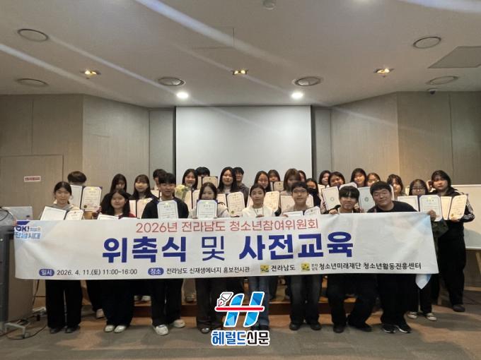 [Çì·²µå½Å¹® = ³ë½Â¾ð ±âÀÚ] (Àç)Àü¶ó³²µµÃ»¼Ò³â¹Ì·¡Àç´Ü û¼Ò³âȰµ¿ÁøÈï¼¾ÅÍ´Â 4¿ù 11ÀÏ(Åä) Àü¶ó³²µµ ½ÅÀç»ý¿¡³ÊÁö È«º¸Àü½Ã°ü ¼¼¹Ì³ª½Ç¿¡¼ ¡®2026³â Àü¶ó³²µµ û¼Ò³âÂü¿©À§¿øÈ¸¡¯ À§ÃË½Ä ¹× »çÀü±³À°À» °³ÃÖÇÏ°í º»°ÝÀûÀΠȰµ¿ÀÇ ½ÃÀÛÀ» ¾Ë·È´Ù.