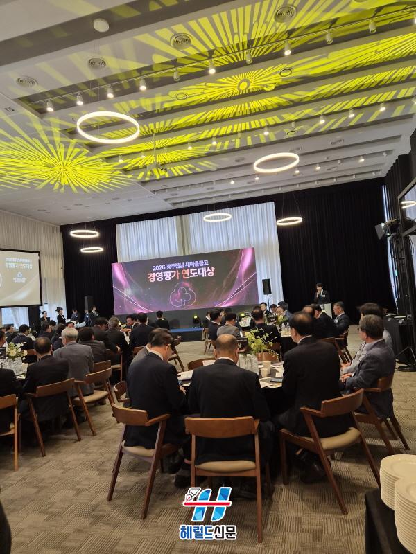 [Çì·²µå½Å¹® = ³ë½Â¾ð ±âÀÚ] ¹«µî»õ¸¶À»±Ý°í´Â 14ÀÏ ¿ÀÀü 10½Ã 30ºÐ, ±¤ÁÖ ³²±¸ ÀӾϵ¿ ¼ÒÀç ¾î¹Ýºê·è¿¡¼ ¿¸° ¡®2026 ±¤ÁÖÀü³² »õ¸¶À»±Ý°í °æ¿µÆò°¡ ¿¬µµ´ë»ó¡¯ ½Ã»ó½Ä¿¡¼ À̰°ÀÌ ¼ö»óÇß´Ù°í ¹àÇû´Ù.