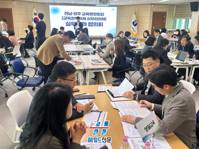 [Çì·²µå½Å¹® = ³ë½Â¾ð ±âÀÚ] 40³â ¸¸ÀÇ Àü³²¡¤±¤ÁÖ ±³À°ÇàÁ¤ ÅëÇÕ¿¡ ³ª¼°í ÀÖ´Â Àü¶ó³²µµ±³À°Ã»°ú ±¤ÁÖ±¤¿ª½Ã±³À°Ã»ÀÌ ±³À°Á¤Ã¥ °úÁ¦¿¡ ´ëÇÑ ½Ç¹« ÇùÀǸ¦ º»°ÝÈÇÑ´Ù.