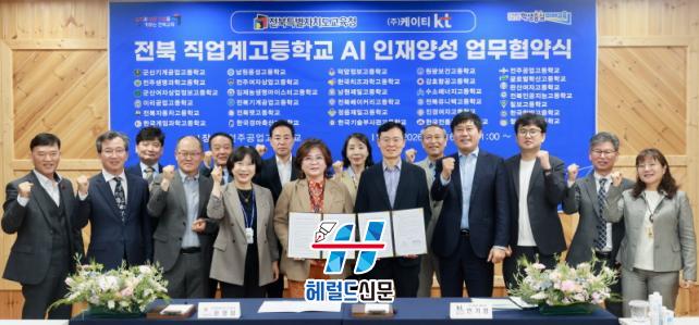 ÀüºÏ±³À°Ã»°ú KT´Â 16ÀÏ ÀüÁÖ°ø¾÷°íµîÇб³¿¡¼ ¡®Á÷¾÷°è°íµîÇб³ AI ÀÎÀç¾ç¼ºÀ» À§ÇÑ ¾÷¹«Çù¾à¡¯À» ü°áÇß´Ù°í ¹àÇû´Ù.