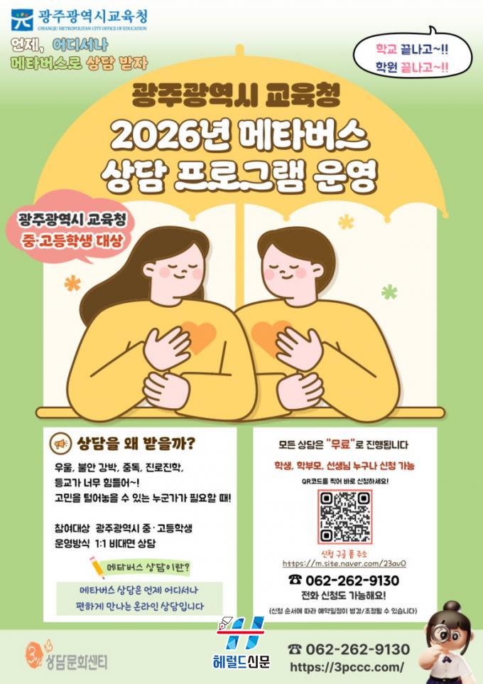 [Çì·²µå½Å¹® = ³ë½Â¾ð ±âÀÚ] ±¤Áֽñ³À°Ã»Àº ÇлýµéÀÇ ½É¸®¡¤Á¤¼¸¦ ´õ¿í ÃÎÃÎÇÏ°Ô »ìÇDZâ À§ÇØ ¡®2026³â ¸ÞŸ¹ö½º »ó´ã ÇÁ·Î±×·¥¡¯À» °³Æí ¿î¿µÇÑ´Ù.