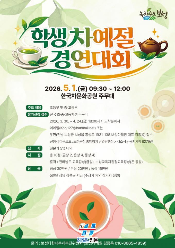 [Çì·²µå½Å¹® = Àü¿µ±Ô ±âÀÚ] º¸¼º±ºÀº ¿À´Â 5¿ù 1ÀÏ °³ÃֵǴ ¡®2026 ÇлýÂ÷¿¹Àý°æ¿¬´ëȸ¡¯¿¡ Âü°¡ÇÒ Àü±¹ ÃÊ¡¤Áß¡¤°íµîÇлýÀ» ¸ðÁýÇÑ´Ù°í ¹àÇû´Ù.