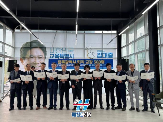 [Çì·²µå½Å¹® = ³ë½Â¾ð ±âÀÚ] ±¤ÁÖ ÅðÁ÷ ±³Àå 314¸íÀÌ ±è´ëÁß Àü³²±¤ÁÖÅëÇÕÆ¯º°½Ã±³À°°¨ ¿¹ºñÈĺ¸¿¡ ´ëÇÑ ÁöÁö¸¦ °ø½Ä ¼±¾ðÇß´Ù.
