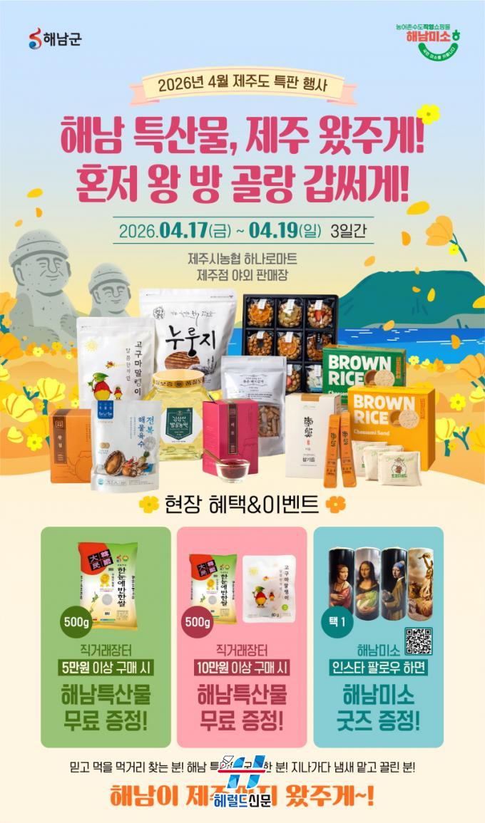 [Çì·²µå½Å¹® = ³ë½Â¾ð ±âÀÚ] ÇØ³²±ºÀº ¹Ù´Ù °Ç³Ê Á¦ÁÖ ¼ÒºñÀÚ¸¦ ã¾Æ ¿À´Â 17ÀϺÎÅÍ 19ÀÏ, 3Àϰ£ Á¦ÁֽóóÇù Çϳª·Î¸¶Æ® Á¦ÁÖÁ¡ ¾ß¿ÜƯ¼³¸ÅÀå¿¡¼ ³ó¼öƯ»ê¹° Á÷°Å·¡ÀåÅ͸¦ ¿î¿µÇÑ´Ù.