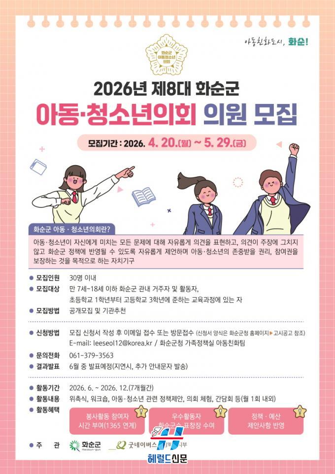 [Çì·²µå½Å¹® = ³ë½Â¾ð ±âÀÚ] ȼø±º(±º¼ö ±¸º¹±Ô)Àº ¡®2026³â Á¦8´ë ȼø±º ¾Æµ¿¡¤Ã»¼Ò³âÀÇȸ¡¯ ÀÇ¿ø 30¸íÀ» ¿À´Â 4¿ù 20ÀϺÎÅÍ 5¿ù 29ÀϱîÁö °ø°³ ¸ðÁýÇÑ´Ù°í ¹àÇû´Ù.