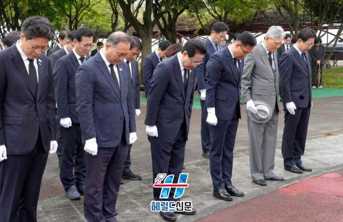 [Çì·²µå½Å¹® = ³ë½Â¾ð ±âÀÚ] Àü¶ó³²µµ´Â 4¡¤19Çõ¸í Á¦66Áֳ⠱â³äÀÏÀÎ 19ÀÏ ¸ñÆ÷ ´Þ¸ÂÀ̰ø¿ø 4¡¤19 ¹ÎÁÖÇõ¸í ±â³äºñ¸¦ ã¾Æ ¹ÎÁÖ¿µ·ÉÀÇ Èñ»ý°ú Çå½ÅÀ» ±â·È´Ù.