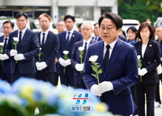 ÇÑÆí, ±â³ä½Ä¿¡ ¾Õ¼ ¿ÀÀü 9½Ã 10ºÐ ±¤ÁÖ°ø¿ø ³» 4¡¤19Çõ¸í ±â³äž¿¡¼ °±âÁ¤ ±¤ÁÖ±¤¿ª½ÃÀå, Àå¼÷³² ±¤ÁÖÁö¹æº¸ÈÆÃ»Àå, Ãֽº¹ ±¤ÁÖ±¤¿ª½Ã±³À°Ã» ºÎ±³À°°¨, Áö¿ª±¸ ±¹È¸ÀÇ¿ø, ½ÃÀÇ¿ø, 4¡¤19 °ø¹ý´ÜüÀåµî 30¿© ¸íÀÌ Âü¼®ÇÑ °¡¿îµ¥ Âü¹è Çà»ç°¡ ÁøÇàµÆ´Ù.