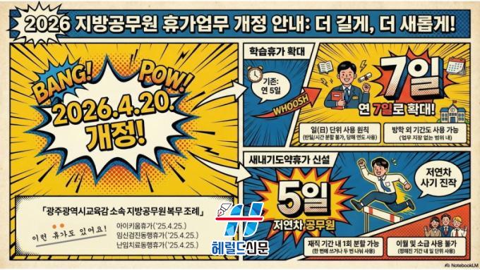 [Çì·²µå½Å¹® = ³ë½Â¾ð ±âÀÚ] ±¤Áֽñ³À°Ã»ÀÌ Áö¹æ°ø¹«¿øÀÇ ±Ù¹«¿©°Ç °³¼±À» À§ÇØ Àú°æ·Â °ø¹«¿øÀÇ °øÁ÷ ÀûÀÀÀ» Áö¿øÇÏ´Â ¡®»õ³»±âµµ¾àÈÞ°¡¡¯¸¦ µµÀÔÇϰí Á÷¹«¿ª·® °È¸¦ À§ÇÑ ¡®ÇнÀÈÞ°¡¡¯¸¦ È®´ëÇÑ´Ù.