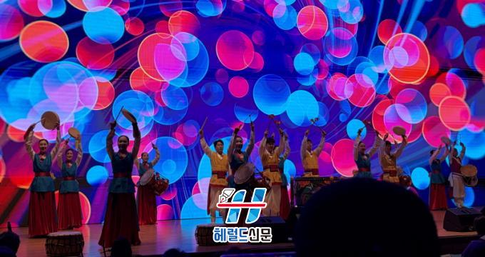 20ÀÏ ¿©¼ö ¿¢½ºÆ÷Ȧ¿¡¼ ¿¸° ±¹Á¦ÁÖ°£ °³È¸½Ä¿¡¼± ±¹¾Ç ¿¹¼ú´Ü¿ø 50¸íÀÌ ´ë±Ô¸ð·Î Ãâ¿¬ÇØ Ä¡À¯¿Í »ó»ýÀÇ ¸Þ½ÃÁö¸¦ ´ã°í ÀÖ´Â Çö´ëÀû °¨°¢ÀÇ ±¹¾Ç°ú Ÿ¹«¾ÇÀÇ Èï°Ü¿î ÆÛÆ÷¸Õ½º¸¦ ¼±º¸À̸ç Å« È£ÀÀÀ» ¾ò¾ú´Ù.