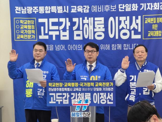 [Çì·²µå½Å¹® = ³ë½Â¾ð ±âÀÚ] Àü³²¡¤±¤ÁÖ ÅëÇÕÆ¯º°½Ã ±³À°°¨ ¼±°Å¿¡ ³ª¼± °íµÎ°©¡¤±èÇØ·æ¡¤ÀÌÁ¤¼± ¿¹ºñÈ帰¡ ´ÜÀÏÈ¿¡ Àü°Ý ÇÕÀÇÇß´Ù.