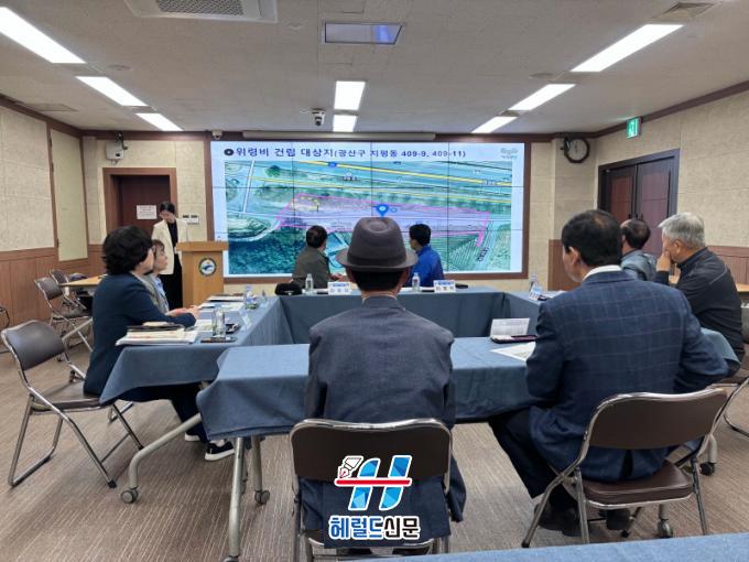À̳¯ ȸÀÇ¿¡¼´Â À§·Éºñ °Ç¸³ °ü·Ã ÇöȲÀ» °øÀ¯ÇÏ°í ¼¼ºÎ ÀÏÁ¤¡¤¿ªÇÒ ºÐ´ãÀ» ½Éµµ ÀÖ°Ô ³íÀÇÇß´Ù. ƯÈ÷ ¹Î°£ÀÎ Èñ»ýÀÚ Áý´ÜÈñ»ý Àå¼ÒÀÎ »ïµµµ¿À» Áß½ÉÀ¸·Î Áö¿ª»çȸ¿ÍÀÇ Æø³ÐÀº ÀÇ°ß ¼ö·ÅÀ» °ÅÃÄ À§·Éºñ °Ç¸³ ´ë»óÁö¸¦ ¼±Á¤Çß´Ù. À§·Éºñ´Â ±¤»ê±¸ ÁöÆòµ¿ 409-9, 409-11¿¡ ¼³Ä¡µÉ ¿¹Á¤ÀÌ´Ù.