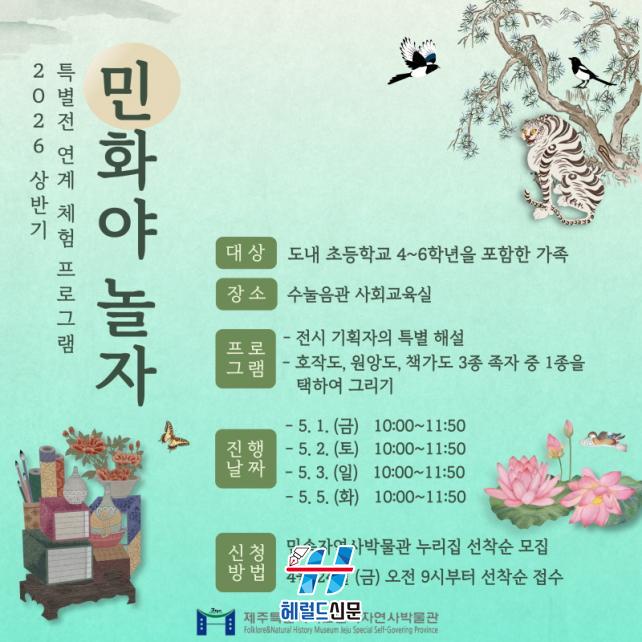 À̹ø ÇÁ·Î±×·¥Àº Á¦156ȸ Ưº°Àü ¡®¶æÀ» ǰÀº ±×¸² ¹ÎÈ'¿Í ¿¬°èÇØ ¸¶·ÃµÆ´Ù. Á¶»óµéÀÇ ±æ»ó°ú ¼Ò¸Á, ¿¾À̾߱⸦ ´ãÀº ¹ÎÈ¿Í Á¦ÁÖ¹®ÀÚµµ¿¡ ´ëÇÑ Çп¹»ç ÇØ¼³À» µéÀº µÚ, È£ÀÛµµ¡¤¿ø¾Óµµ¡¤Ã¥°¡µµ Á·ÀÚ 3Á¾ °¡¿îµ¥ 1Á¾À» Á÷Á¢ ±×·Áº¸´Â ¹æ½ÄÀ¸·Î ÁøÇàµÈ´Ù.