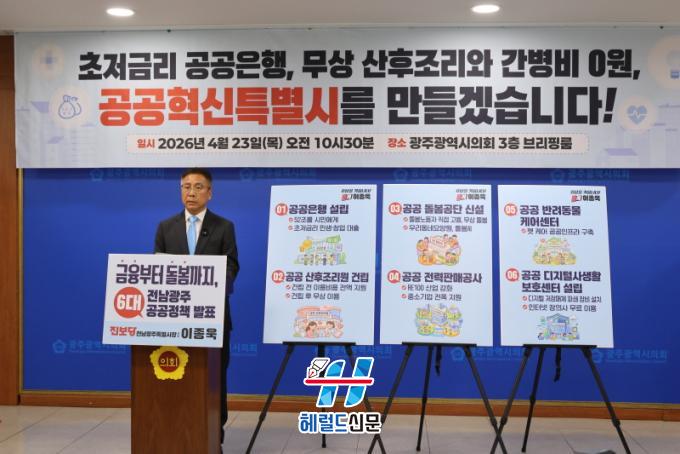 [Çì·²µå½Å¹® = ³ë½Â¾ð ±âÀÚ] ÀÌÁ¾¿í Áøº¸´ç Àü³²±¤ÁÖÆ¯º°½ÃÀå Èĺ¸(¹ÎÁÖ³ëÃÑ ±¤ÁÖº»ºÎÀå)°¡ 23ÀÏ ±âÀÚȸ°ßÀ» ¿°í °ø°øÀºÇà ¼³¸³°ú ÃÊÀú±Ý¸® ¹Î»ý ´ëÃâ, »êÈÄÁ¶¸® ºñ¿ë°ú °£º´ºñ Àü¾× Áö¿ø, °ø°ø ¹Ý·Áµ¿¹° ÄɾÅÍ µî °ø°øºÎ¹® 6´ë °ø¾àÀ» ¹ßÇ¥Çß´Ù.