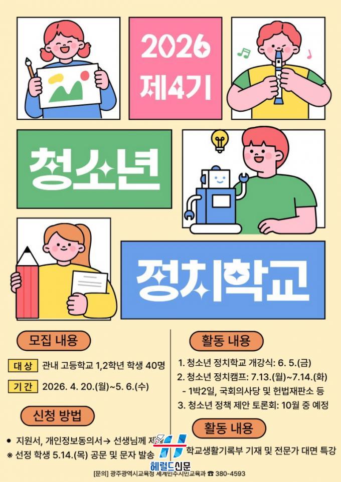 [Çì·²µå½Å¹® = ³ë½Â¾ð ±âÀÚ] ±¤Áֽñ³À°Ã»Àº û¼Ò³âÀÇ Á¤Ä¡Âü¿© ¿ª·®À» Ű¿ì±â À§ÇØ ¡®Á¦4±â û¼Ò³â Á¤Ä¡Çб³¡¯ Âü°¡ÀÚ¸¦ ¸ðÁýÇÑ´Ù.