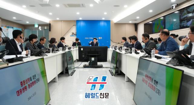 Á¦ÁÖµµ´Â 23ÀÏ ¿ÀÀü ¿À¿µÈÆ Áö»ç ÁÖÀç·Î µµÃ» Àç³¾ÈÀü´ëÃ¥º»ºÎ »óȲ½Ç¿¡¼¡®Áßµ¿»óȲ¿¡ µû¸¥ ´ëÀÀ»óȲ Á¡°ËȸÀÇ(2Â÷)¡¯¸¦ ¿°í Á¤ºÎ Ãß°æ ¿¬°è ÇöȲ°ú ºÐ¾ßº° ¹Î»ý¾ÈÁ¤ ÃßÁø»óȲÀ» Á¾ÇÕ Á¡°ËÇß´Ù.