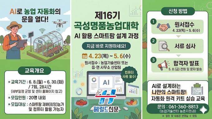 [Çì·²µå½Å¹® = ³ë½Â¾ð ±âÀÚ] Àü³² °î¼º±ºÀÌ ¹Ì·¡ ³ó¾÷À» ¼±µµÇÒ ½º¸¶Æ®³ó¾÷ Àü¹®°¡ À°¼ºÀ» À§ÇØ ¡®Á¦16±â °î¼º¸íǰ³ó¾÷´ëÇÐ AI Ȱ¿ë ½º¸¶Æ®ÆÊ ¼³°è °úÁ¤¡¯À» ¿î¿µÇÑ´Ù°í 24ÀÏ ¹àÇû´Ù.