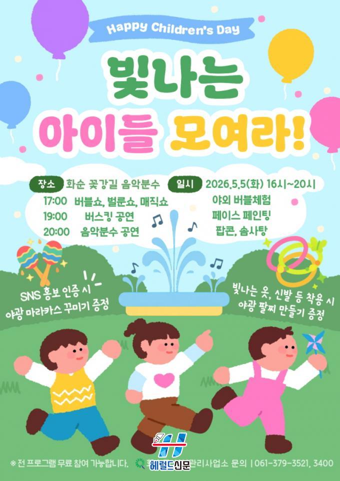 [Çì·²µå½Å¹® = ³ë½Â¾ð ±âÀÚ] ȼø±º(±º¼ö ±¸º¹±Ô)Àº ¿À´Â 5¿ù 5ÀÏ ¿ÀÈÄ 4½ÃºÎÅÍ ¹ã 8½Ã±îÁö ²É°±æ À½¾ÇºÐ¼ö´ë¿¡¼ ¾î¸°À̳¯ Ưº° Çà»ç ¡®ºû³ª´Â ¾ÆÀÌµé ¸ð¿©¶ó¡¯¸¦ °³ÃÖÇÑ´Ù°í ¹àÇû´Ù.