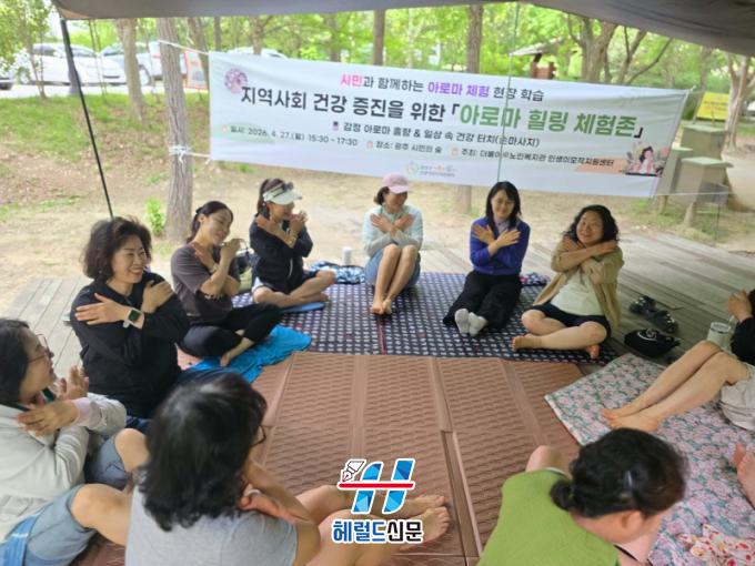 [Çì·²µå½Å¹® = ³ë½Â¾ð ±âÀÚ] ±¤Áֽà ±¤»ê±¸ ´õºÒ¾î¶ô³ëÀκ¹Áö°ü(°üÀå ±è¹é¼ö)ÀÌ Áö³ 27ÀÏ ¡®ÀλýÀ̸ðÀÛÁö¿ø»ç¾÷¡¯ÀÇ ÀÏȯÀ¸·Î ¿î¿µ ÁßÀÎ ¾Æ·Î¸¶°Ç°ÄÚĪÁöµµ»ç °úÁ¤ ¡®¾Æ·Î¸¶ Èú¸µ üÇèȰµ¿¡¯ ÇöÀåÇнÀÀ» ÁøÇàÇß´Ù.