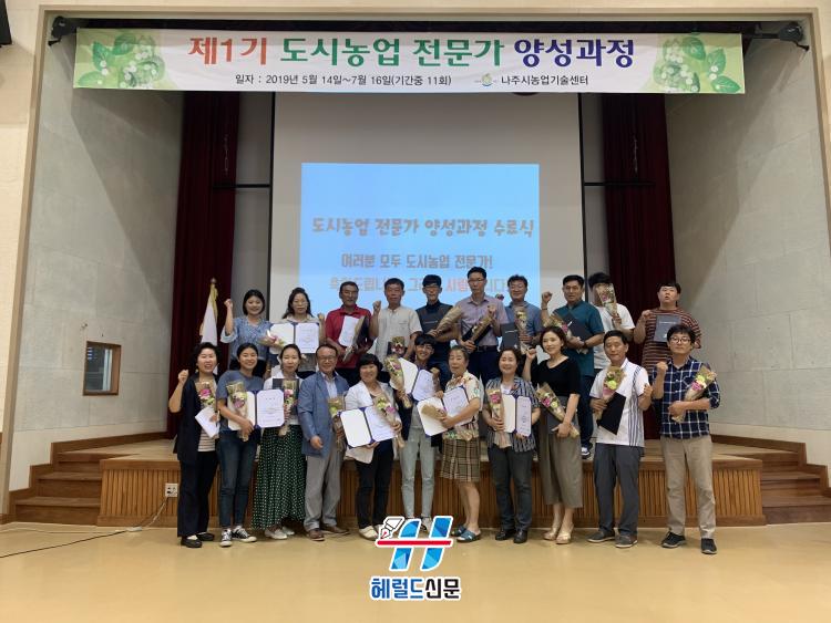 [Çì·²µå½Å¹® = ¹®»óÁØ ±âÀÚ] ³ªÁÖ½Ã(½ÃÀå °ÀαÔ)´Â Áö³ 16ÀÏ ³ó¾÷±â¼ú¼¾ÅÍ ´Ù¸ñÀû°´ç¿¡¼ Á¦1±â µµ½Ã³ó¾÷ Àü¹®°¡ ¾ç¼º°úÁ¤ ±³À° ¼ö·á½ÄÀ» °®°í, µµ½Ã³ó¾÷ ÇöÀå¿¡¼ Ȱ¾àÇÒ ¹Î°£ Àü¹®°¡ 23¸íÀ» ¹èÃâÇß´Ù.