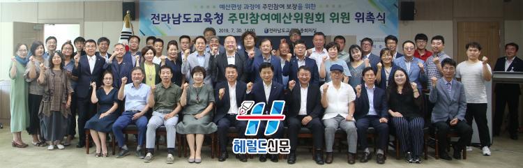 Àü¶ó³²µµ±³À°Ã»Àº 7¿ù 30ÀÏ ¿ÀÈÄ Ã»»ç 5Ãþ ÁßȸÀǽǿ¡¼ »õ·Î ¼±ÃâµÈ Á¦5±â ÁÖ¹ÎÂü¿©¿¹»êÀ§¿øÈ¸ À§¿ø 50¸í¿¡°Ô À§ÃËÀåÀ» ¼ö¿©Çϰí 2019³âµµ ÁÖ¹ÎÂü¿©¿¹»êÁ¦ÀÇ º»°Ý ¿î¿µÀ» ¾Ë·È´Ù.