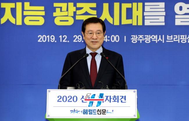 [Çì·²µå½Å¹® = Á¶ÀºÁ¤ ±âÀÚ] À̿뼷 ±¤ÁÖ±¤¿ª½ÃÀåÀº 29ÀÏ ½Ãû ºê¸®Çη뿡¼ ±âÀÚȸ°ßÀ» °®°í 2020³â 20´ë ÇٽɽÃÃ¥À» ´ãÀº ½ÃÁ¤¿î¿µ ¹æÇâÀ» ¹ßÇ¥Çϸç,¡°Çõ½Å․¼ÒÅë․û·ÅÀ» ¹ÙÅÁÀ¸·Î ½ÃÁ¤¿¡ ´õ¿í ¸ÅÁøÇØ ¡®ÀΰøÁö´É ±¤Áֽô롯¸¦ Ȱ¦ ¿°Ú´Ù°í ¹àÇû´Ù.