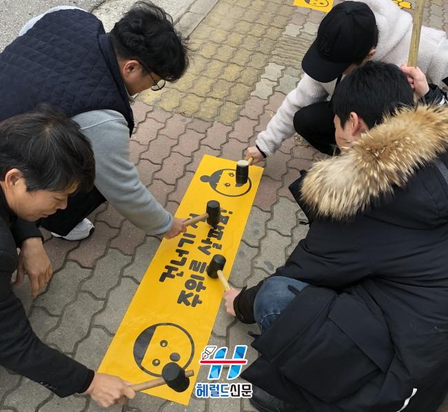 [Çì·²µå½Å¹® = ¹®»óÁØ ±âÀÚ] ±¤Áֽà ±¤»ê±¸ ½Å°¡µ¿¿¡¼´Â ¼±Ã¢ÃʵîÇб³ Çб³¸ð¡¤ÇлýµéÀÇ Âü¿©¸¦ ¹ÙÅÁÀ¸·Î ¼±Ã¢ÃÊ ÁÖº¯ Ⱦ´Üº¸µµ 8°÷¿¡ ¾î¸°ÀÌ ±³Åë¾ÈÀü ½Ã¼³¹° ¡®³ë¶õ¹ßÀÚ±¹ ±æ¡¯À» 27ÀÏ ¼³Ä¡Çß´Ù.