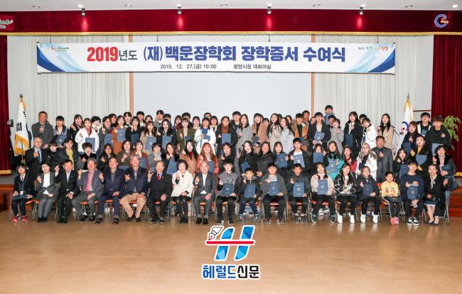 [Çì·²µå½Å¹® = Àü¿µ±Ô ±âÀÚ] Àç´Ü¹ýÀÎ ¹é¿îÀåÇÐȸ(ÀÌ»çÀå Á¤Çöº¹)°¡ Áö³ 27ÀÏ(±Ý) ±¤¾ç½Ãû ȸÀǽǿ¡¼ ¿ÃÇØ ¹é¿îÀåÇлý¿¡ ¼±¹ßµÈ Çлý 481¸íÀ» ´ë»óÀ¸·Î ÀåÇÐÁõ¼ ¼ö¿©½ÄÀ» °¡Á³´Ù°í ¹àÇû´Ù.