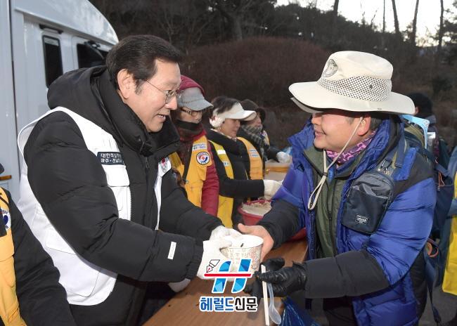 À̿뼷 ±¤ÁÖ±¤¿ª½ÃÀåÀÌ 1ÀÏ ¿ÀÀü µ¿±¸ Áõ½É»ç ޹æ¾È³»¼¾ÅÍ ¾Õ¿¡¼ ¿¸° ¡®°æÀڳ⠻õÇØ¸ÂÀÌ ¶±±¹ ³ª´® Çà»ç¡¯¿¡¼ Àû½ÊÀÚ»ç ȸ¿øµé°ú ÇÔ²² ¹«µî»ê µî¹Ý°´µéÀ» À§ÇÑ ¶±±¹ ¹è½Ä ºÀ»çȰµ¿À» Çϰí ÀÖ´Ù.