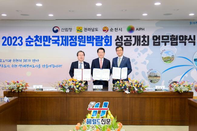 Àü¶ó³²µµ¿Í ¼øÃµ½Ã, AIPH KOREA(±¹Á¦¿ø¿¹»ý»êÀÚÇùȸ Çѱ¹À§¿øÈ¸)´Â 2023¼øÃµ¸¸±¹Á¦Á¤¿ø¹Ú¶÷ȸ À¯Ä¡ ¹× ¼º°ø°³ÃÖ¸¦ À§ÇØ ¿À´Ã(3ÀÏ) ½Ãû ¼ÒȸÀǽǿ¡¼ ¾÷¹«Çù¾àÀ» ü°áÇß´Ù.