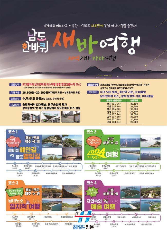 Àü¶ó³²µµ´Â ¶Ç À̹ø °Ü¿ï»óǰ¿¡ óÀ½À¸·Î KTX¿Í ³²µµÇѹÙÄû 4°³ ÄÚ½º¸¦ ¿¬°èÇÑ °áÇÕ»óǰÀÎ ³²µµÇѹÙÄû »õ¹Ù¿©Çà(»õº®±âÂ÷ ¹Ù´Ù¿©Çà)À» Ãâ½Ã, ¼öµµ±Ç ¹× ´Ù¸¥ ½Ã.µµ °ü±¤°´ÀÌ ½±°Ô ³²µµÇѹÙÄû¸¦ Áñ±âµµ·Ï Çϰí ÀÖ´Ù.