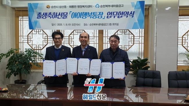À̳¯ Çù¾à½Ä¿¡´Â ¾È¼¼Âù ¼øÃµºÏºÎ»õ¸¶À»±Ý°íÀÌ»çÀå°ú ±èÁ¼± »ï»êµ¿Àå, 俬¼® ÇØ·æ¸éÀåÀÌ Âü¼®ÇßÀ¸¸ç, Çù¾à¿¡ µû¶ó ÇàÁ¤±â°ü¿¡¼´Â »õ¸¶À» ±Ý°íÀÇ ¡®¾ÆÀÌÇູÅëÀ塯»ç¾÷À» ½Ã¹Î¿¡°Ô Àû±Ø È«º¸Çϰí, ºÏºÎ»õ¸¶À»±Ý°í¿¡¼´Â ¼øÃµ½Ã Ãâ»êÀå·Á Á¤Ã¥, Ãâ»êģȻç¾÷ ÇùÁ¶¿Í ¡®¾ÆÀÌÇູÅëÀ塯À» °³¼³ÇÑ ºÎ¸ð¿¡°Ô Ãâ»ýÃàÇÏ±Ý 5¸¸¿øÀ» Áö¿øÇϱâ·Î Çß´Ù.