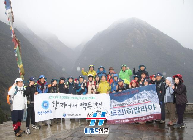 18ÀÏ Àü¶ó³²µµ±³À°Ã»¿¡ µû¸£¸é, ¡®Ã»¼Ò³â¹Ì·¡µµÀü ÇÁ·ÎÁ§Æ® È÷¸»¶ó¾ßÆÀ¡¯ Çлý°ú ±³»ç µî 21¸íÀº À̳¯ ¼¼°è 10À§ºÀÀÎ È÷¸»¶ó¾ß ¾È³ªÇª¸£³ª(ÇØ¹ß 8,091m) º£À̽ºÄ·ÇÁ(ABC, 4,130m) µî¹Ý¿¡ ³ª¼¹´Ù°¡ ´«»çÅ ¼Ò½Ä¿¡ °ð¹Ù·Î ö¼öÇß´Ù.