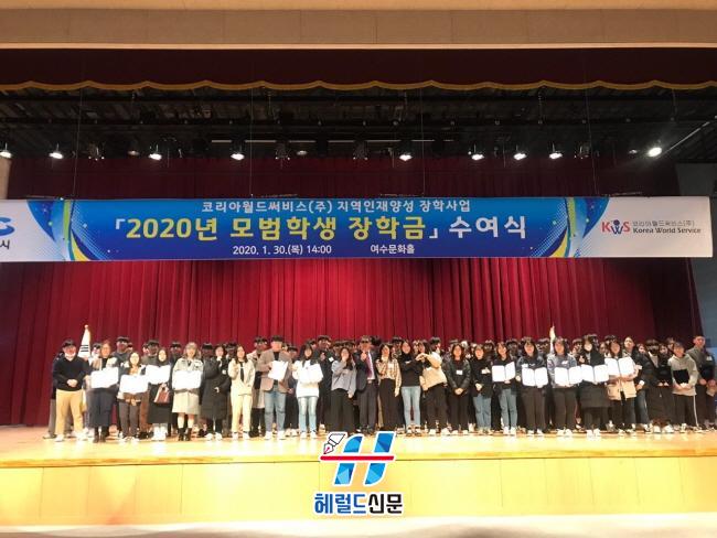 ¿©¼ö½Ã¿¡ µû¸£¸é ÄÚ¸®¾Æ¿ùµå½áºñ½º´Â Áö³ 30ÀÏ ¿©¼ö¹®ÈȦ¿¡¼ Çлý°ú Çкθð µî 200¿© ¸íÀÌ Âü¼®ÇÑ °¡¿îµ¥ ¿©¼öÁö¿ª ¸ð¹üÇлý¿¡°Ô 1¾ï ¿øÀÇ ÀåÇбÝÀ» Àü´ÞÇß´Ù.
