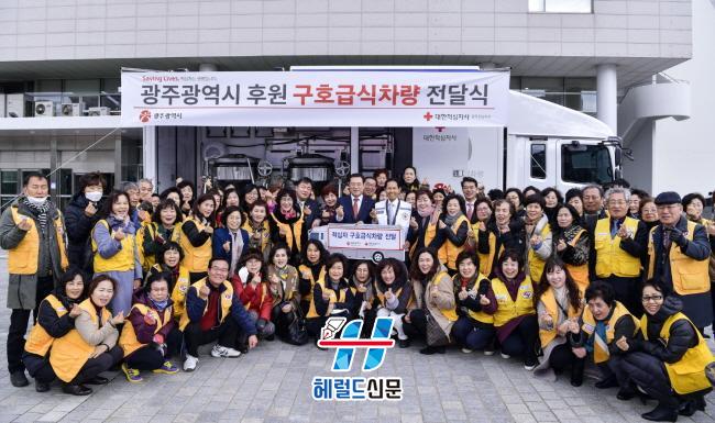 [Çì·²µå½Å¹® = Á¶ÀºÁ¤ ±âÀÚ] ±¤ÁÖ±¤¿ª½Ã´Â 31ÀÏ ½Ãû»ç ¾Õ¿¡¼ ´ëÇÑÀû½ÊÀÚ»ç ±¤ÁÖÀü³²Áö»ç¿¡ ±¸È£±Þ½ÄÂ÷·®À» Àü´ÞÇß´Ù.