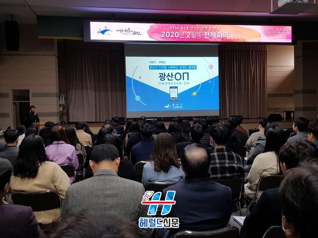 [Çì·²µå½Å¹® = ¹®»óÁØ ±âÀÚ] ±¤Áֽà ±¤»ê±¸(±¸Ã»Àå ±è»ïÈ£)´Â Áö³ 3ÀÏ ±¸Ã»¿¡¼ Áֹΰú °øÁ÷ÀÚ 100¿©¸íÀÌ Âü¼®ÇÑ °¡¿îµ¥ ¸ð¹ÙÀÏ ½Ã¹ÎÂü¿© Ç÷§Æû ¡®±¤»êON(¿Â)¡¯ ¾Û(APP) Ȱ¼ºÈ ¼³¸íȸ¸¦ °³ÃÖÇϰí, º»°Ý ¿î¿µ¿¡ µé¾î°¬´Ù.
