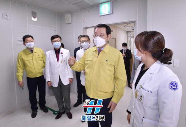 ÀÌ ½ÃÀåÀº ¸ÕÀú Á¶¼±´ëº´¿ø ±¹°¡ÁöÁ¤ÀÔ¿øÄ¡·áº´»ó ÁÖÃâÀÔ±¸ÀÇ ÅëÁ¦ »óȲÀ» È®ÀÎÇϰí À½¾Ðº´µ¿, ÀÀ±Þ½Ç µîÀ» µÑ·¯ºÃ´Ù.¶Ç Á¤Á¾ÈÆ Á¶¼±´ëº´¿øÀå, À±³ª¶ó Á¶¼±´ëº´¿ø °¨¿°°ü¸®½ÇÀåÀ¸·ÎºÎÅÍ È¯ÀÚ ¼±º° ±âÁذú ´ëÀÀÁ¶Ä¡, ¼±º°Áø·á¼Ò ¿î¿µ ÀýÂ÷, ÇöÀå ´ëÀÀü°è µîÀ» º¸°í¹Þ°í ¾Ö·Î »çÇ× µîÀ» ûÃëÇß´Ù.
